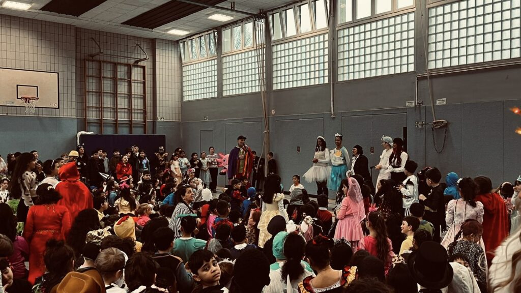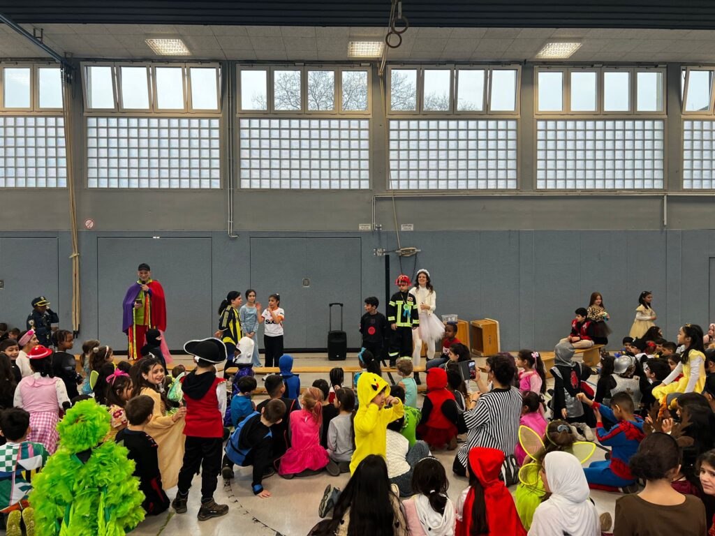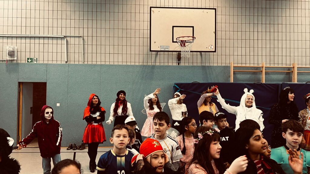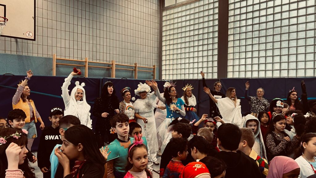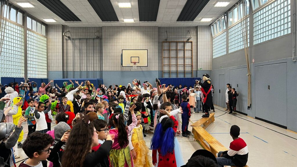 An Weiberfastnacht wurde es an unserer Schule wieder richtig närrisch! In der Turnhalle trafen sich alle Klassen zu einem fröhlichen Auftakt mit gemeinsamem Singen. Mit viel Begeisterung und guter Stimmung schallten die Karnevalslieder durch die Halle.
