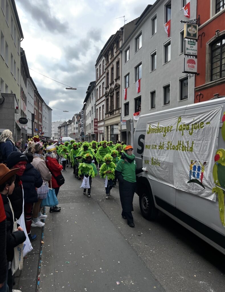 Unter dem Motto „Jröneberger Papajeie – mer sin dat Stadtbild vun Kölle“ präsentierten wir uns bunt, kreativ und voller Begeisterung. Mit viel Herzblut in den Kostümen und einem beeindruckenden Gemeinschaftsgefühl zogen wir durch die Straßen und erlebten einen unvergesslichen Tag. Die Freude bei allen Beteiligten – ob auf oder neben dem Zugweg – war einfach überwältigend.