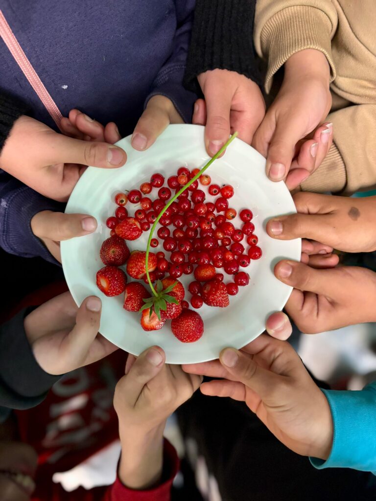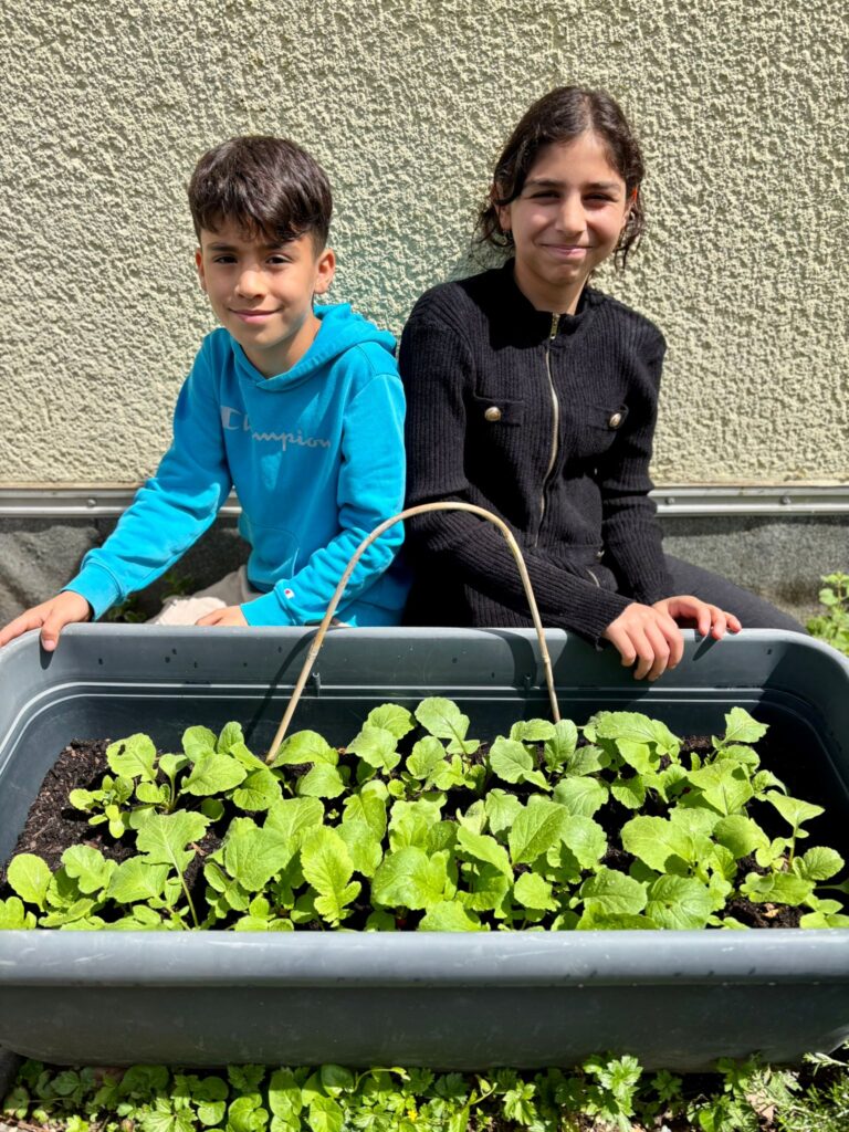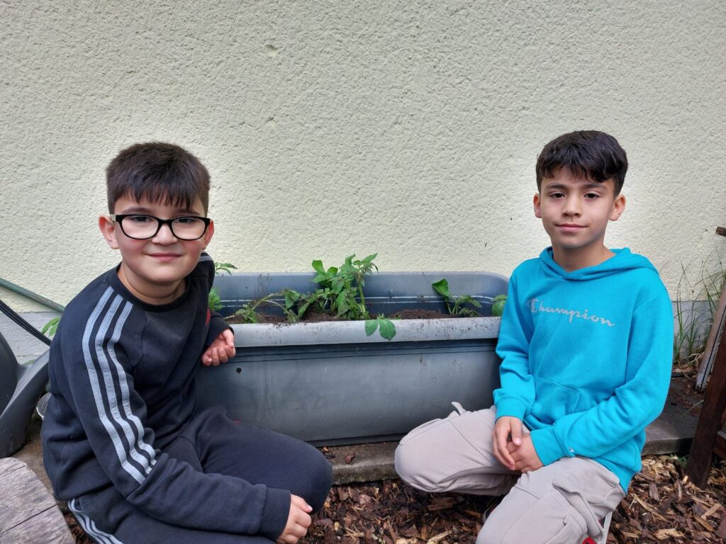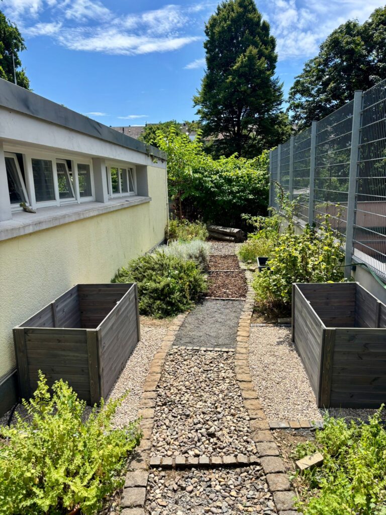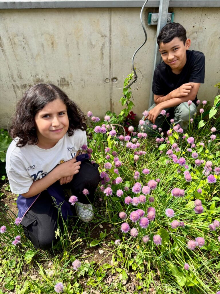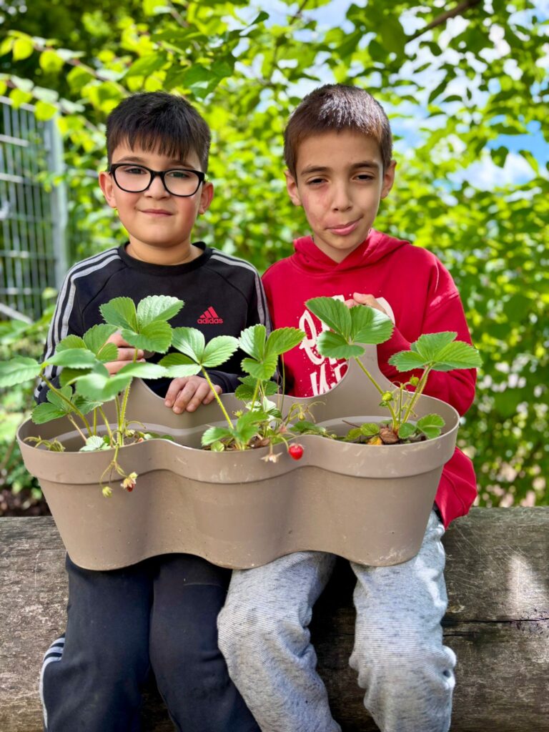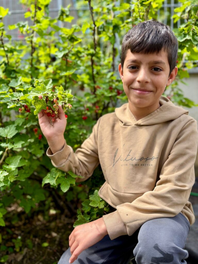 Ein absolutes Highlight für die Kinder ist es den Ertrag der selbst gesäten Pflanzen zu ernten und dann gemeinsam in der Schulküche zu verarbeiten und zu genießen.Selbstverständlich sollen aber nicht nur die Kinder etwas von unserem schönen Garten haben, sondern auch die Tiere und Insekten. So gibt es z.B. einen Bienenfreundlichen Bereich, in dem die Kinder eine wilde Mischung an Bienenfreundlichen Pflanzen säen.